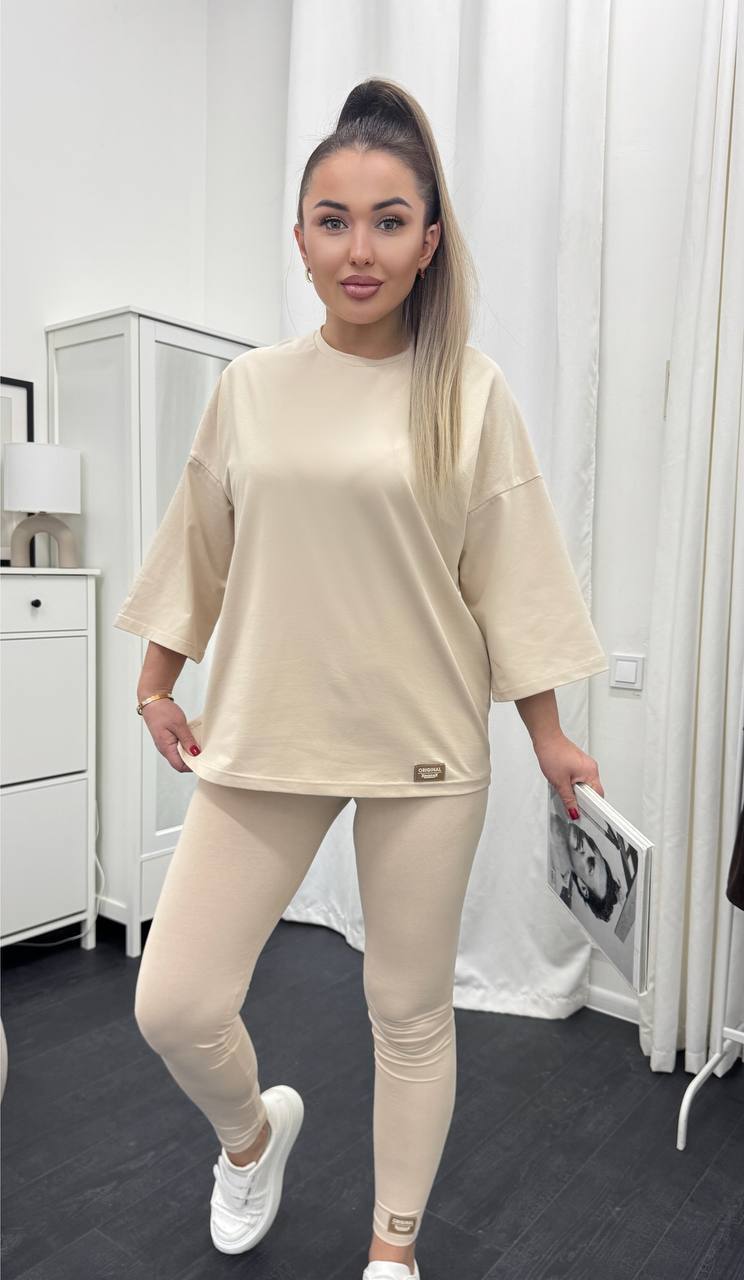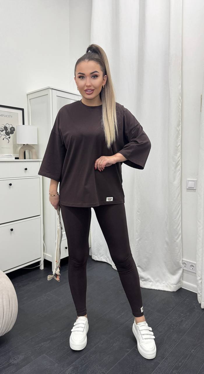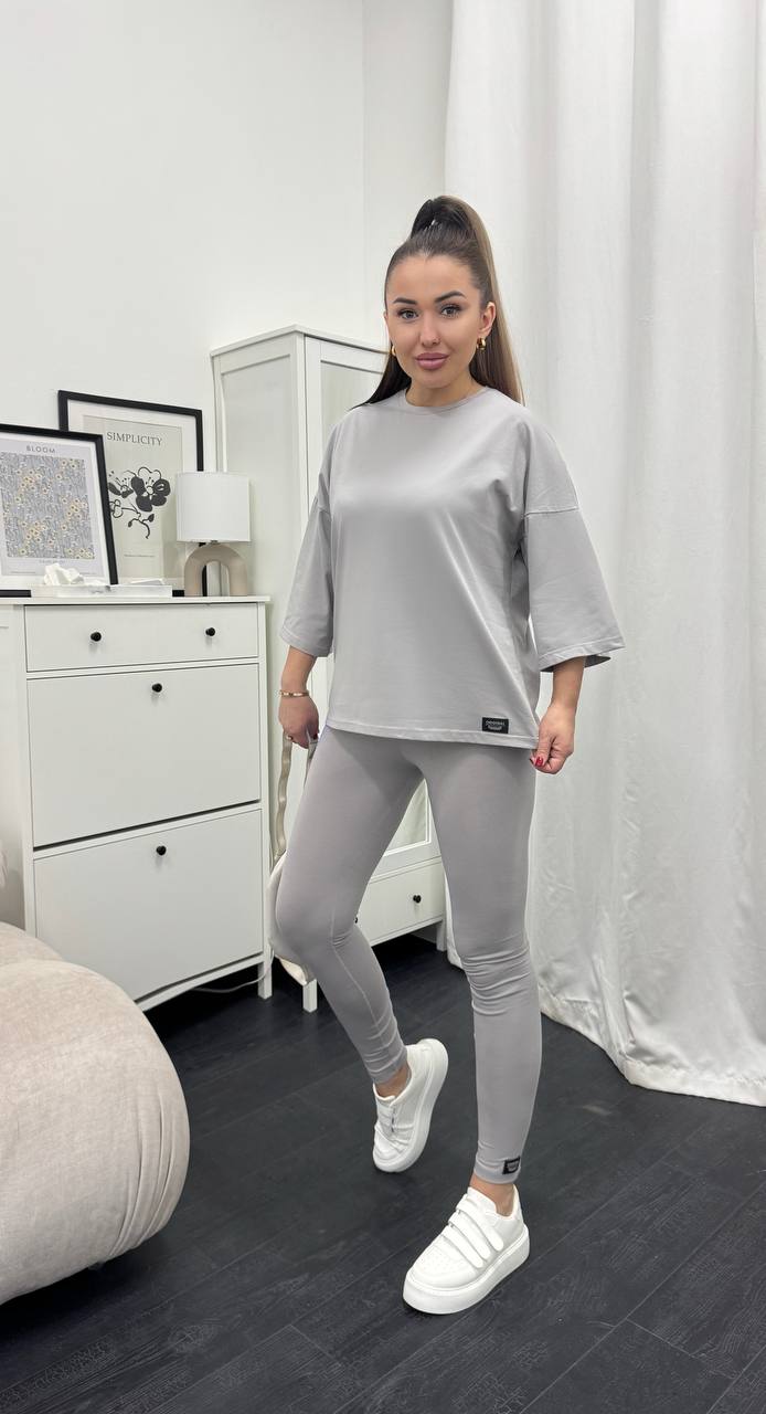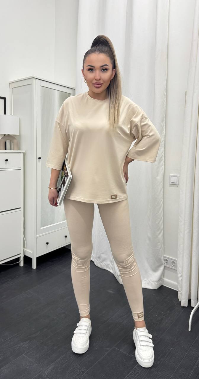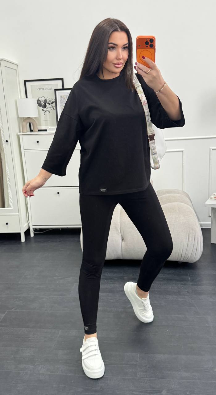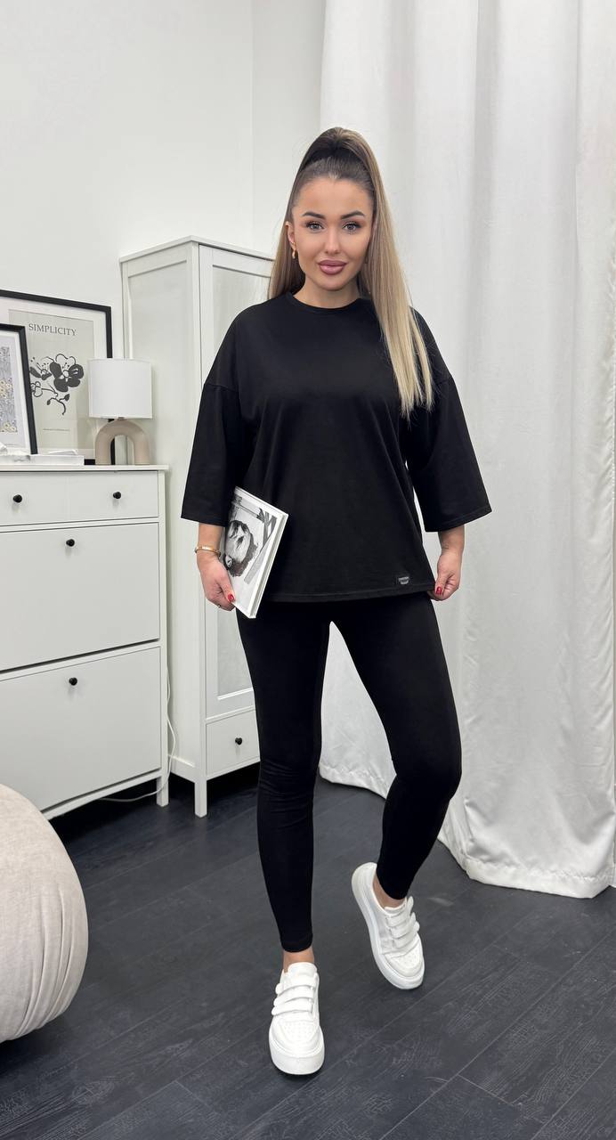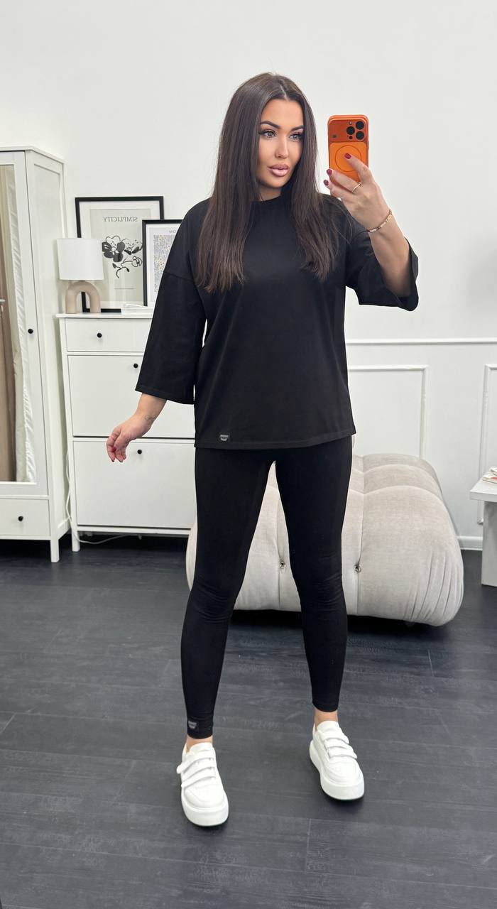 Стильний базовий костюм: Оверсайз футболка + Лосини