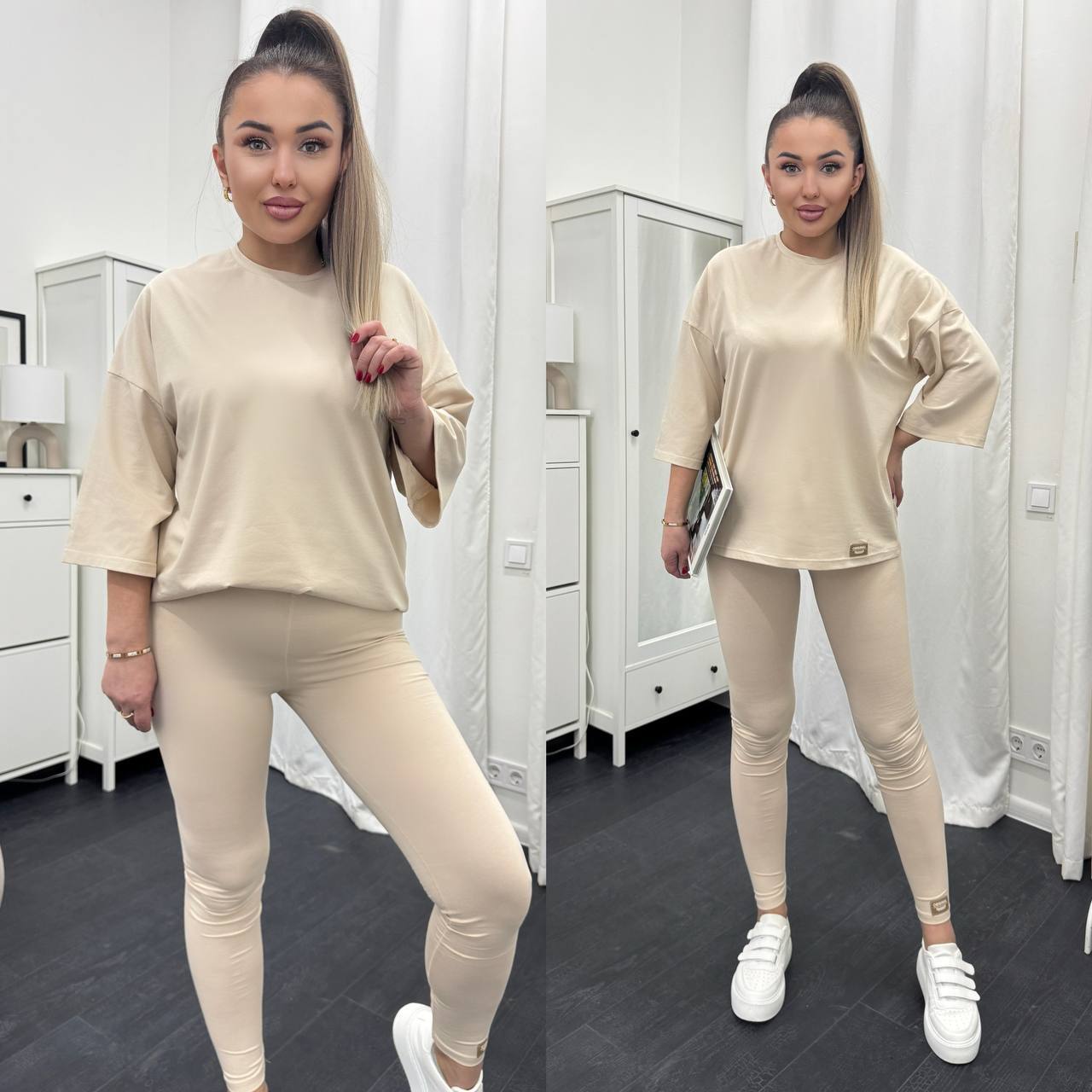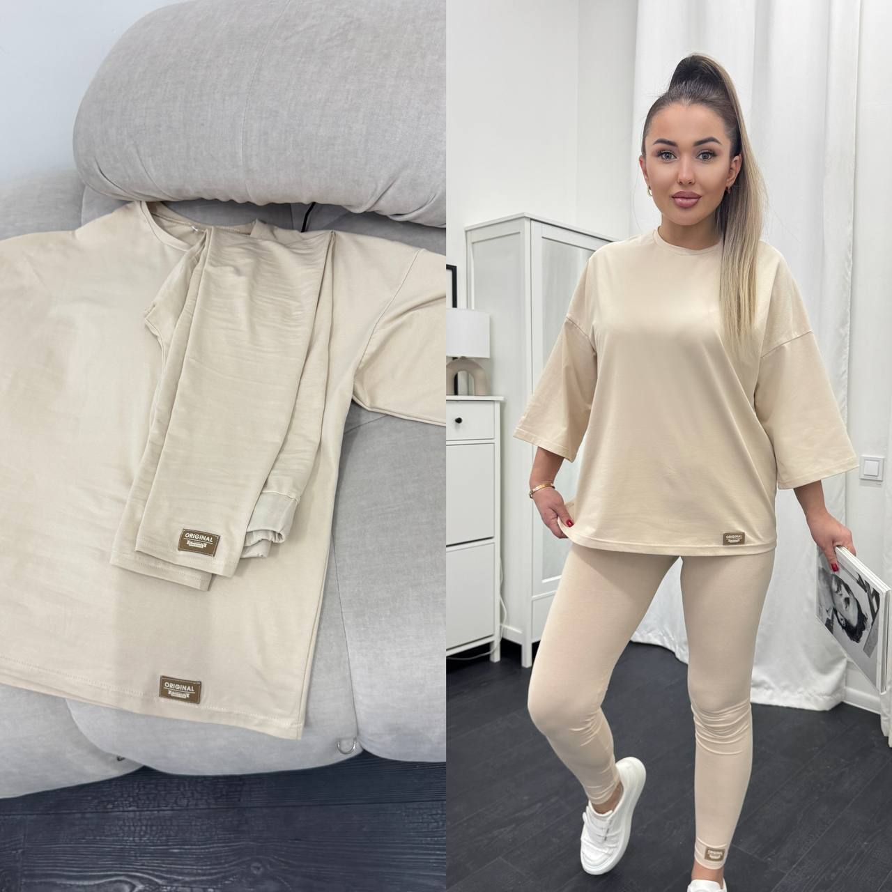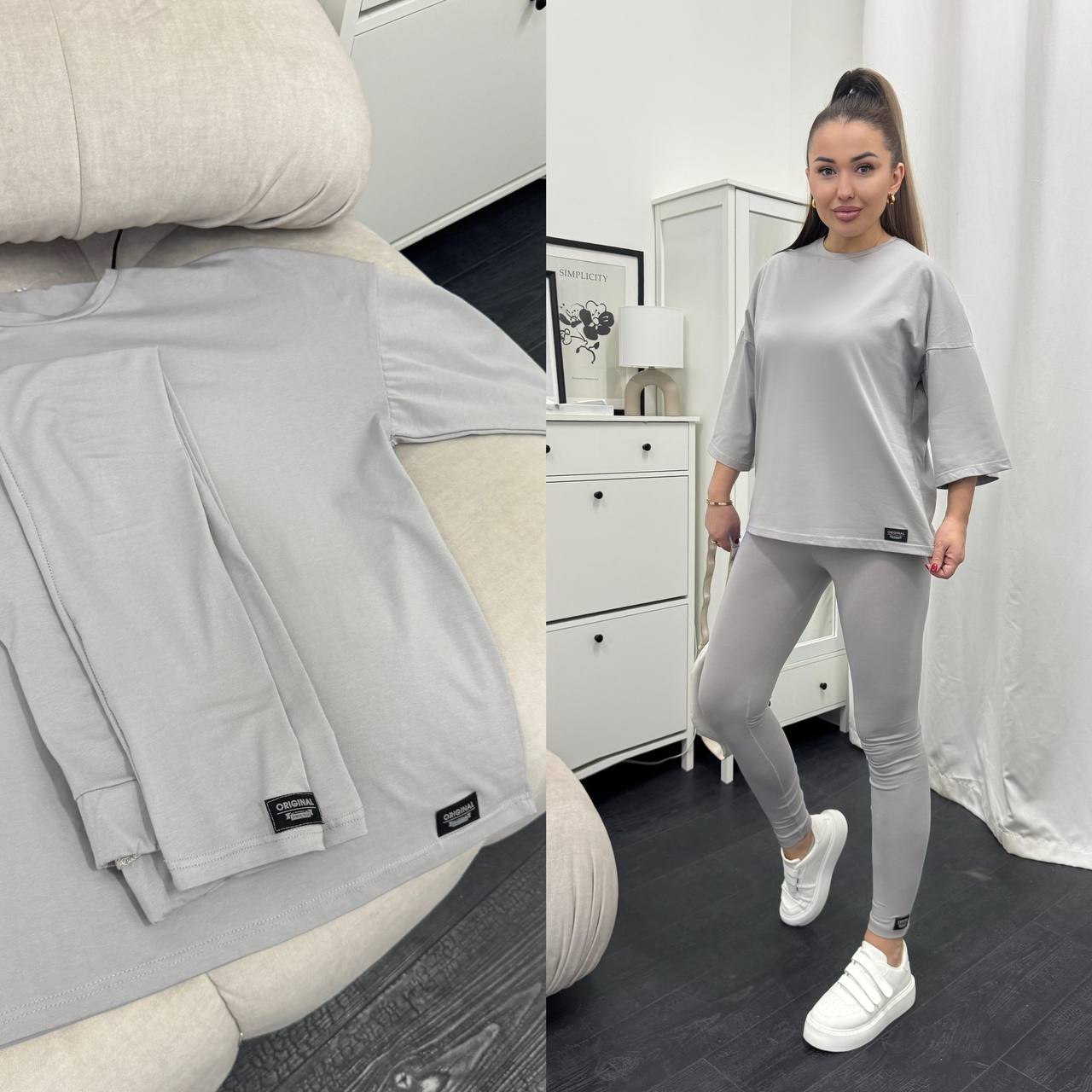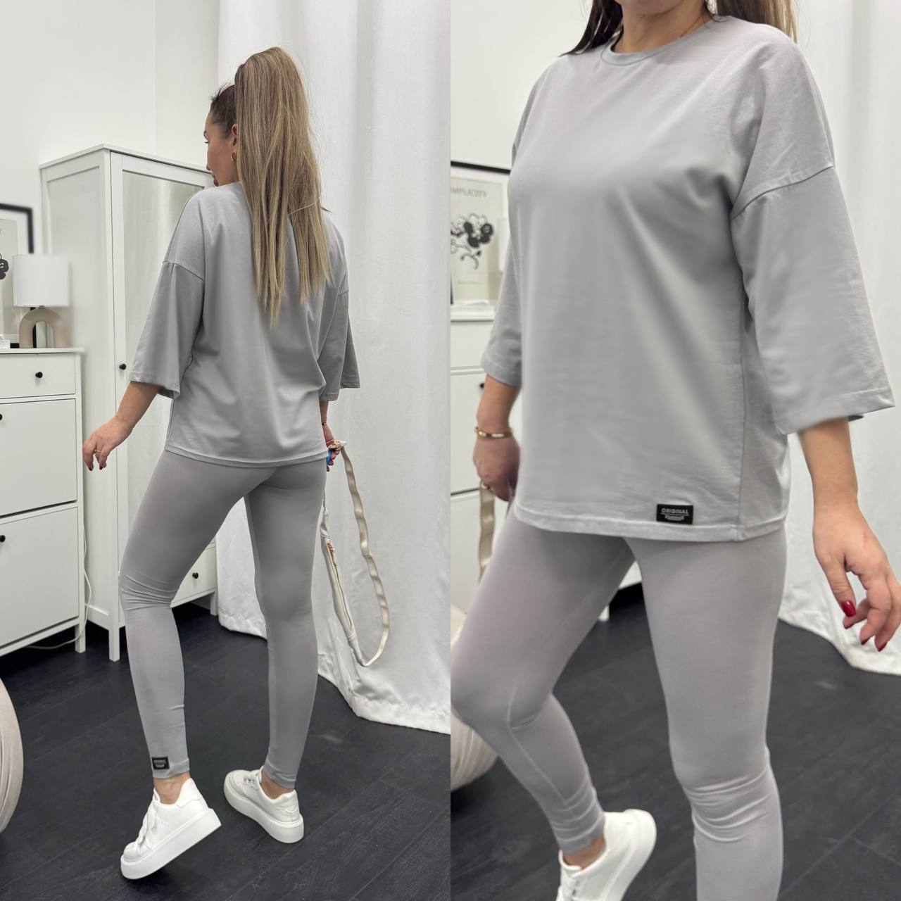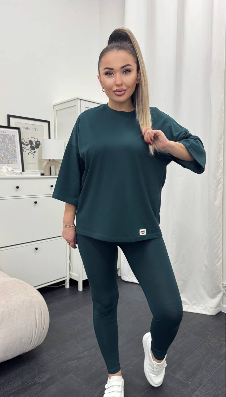 Стильний базовий костюм: Оверсайз футболка + Лосини