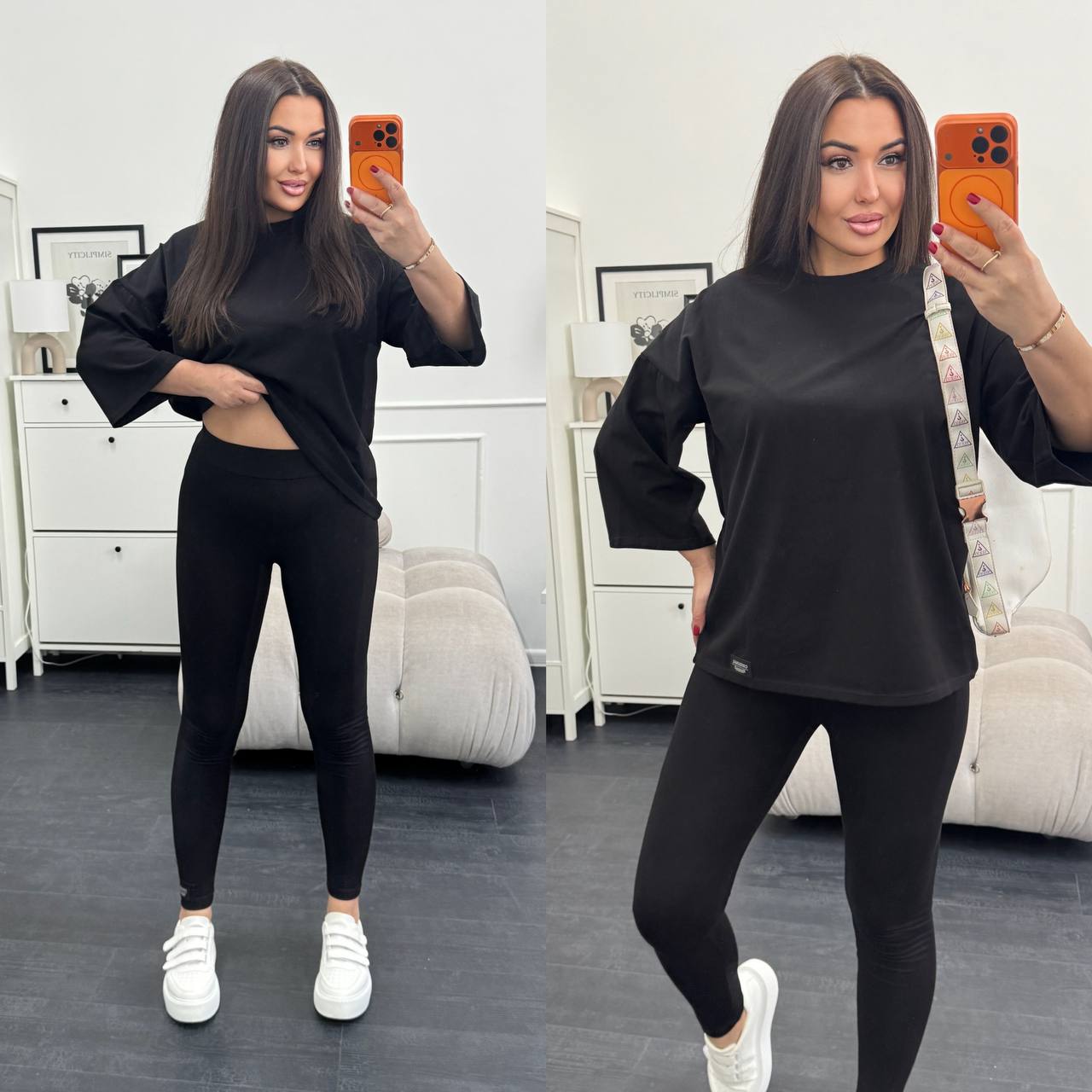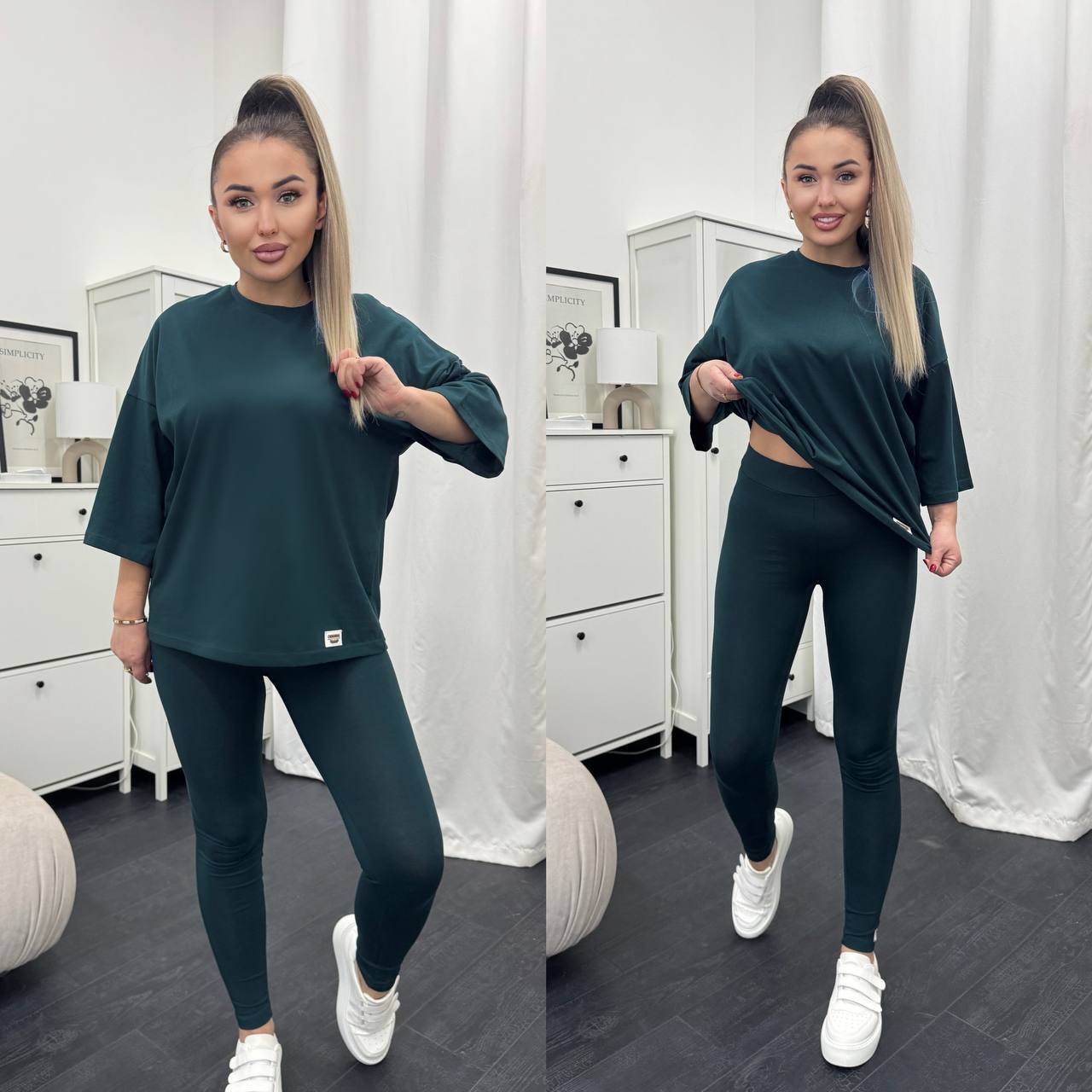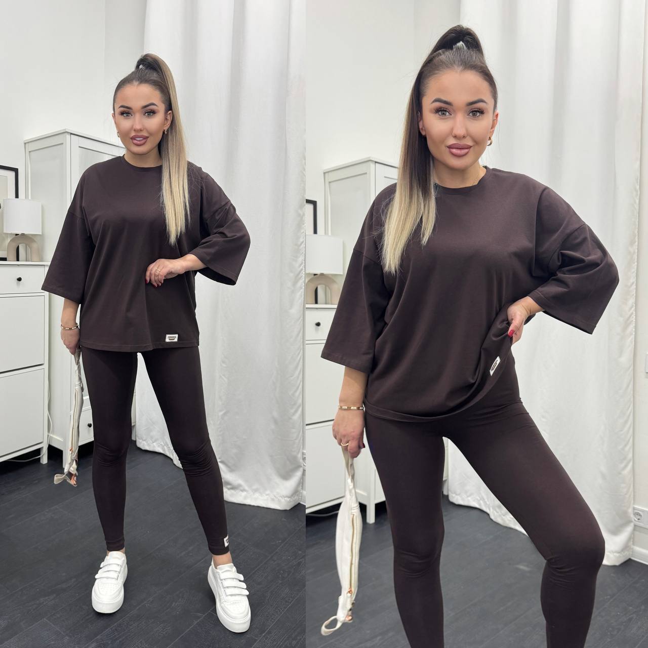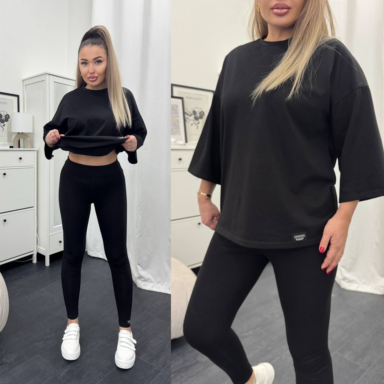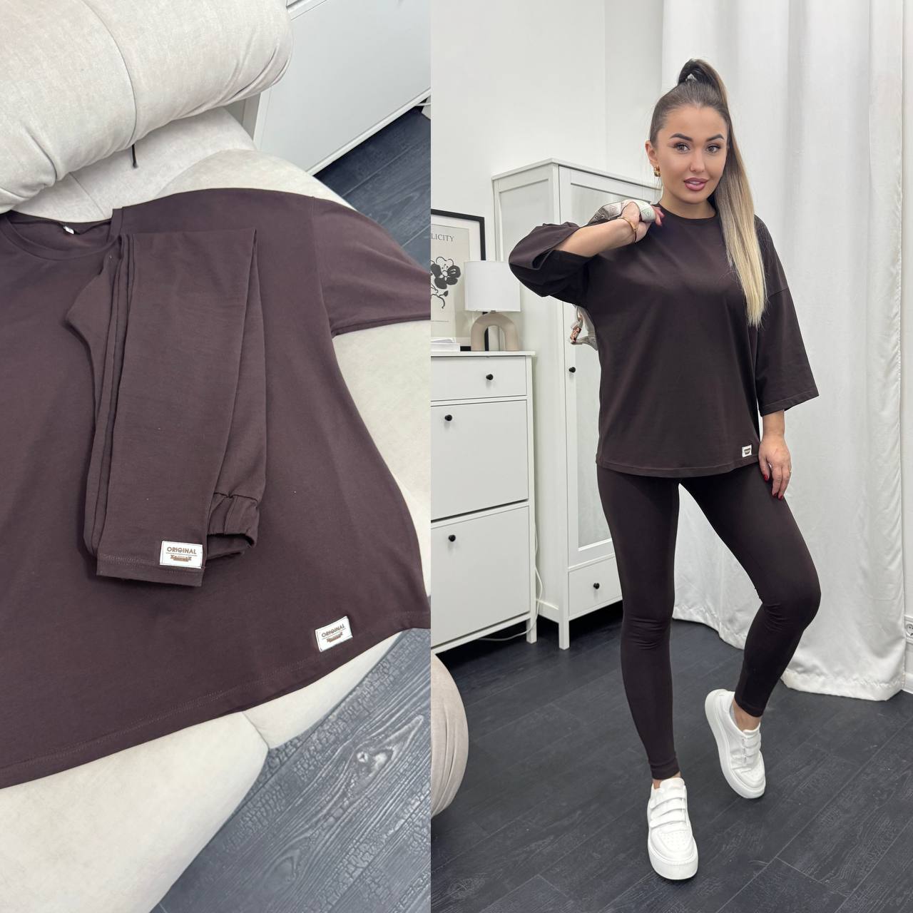 Стильний базовий костюм: Оверсайз футболка + Лосини